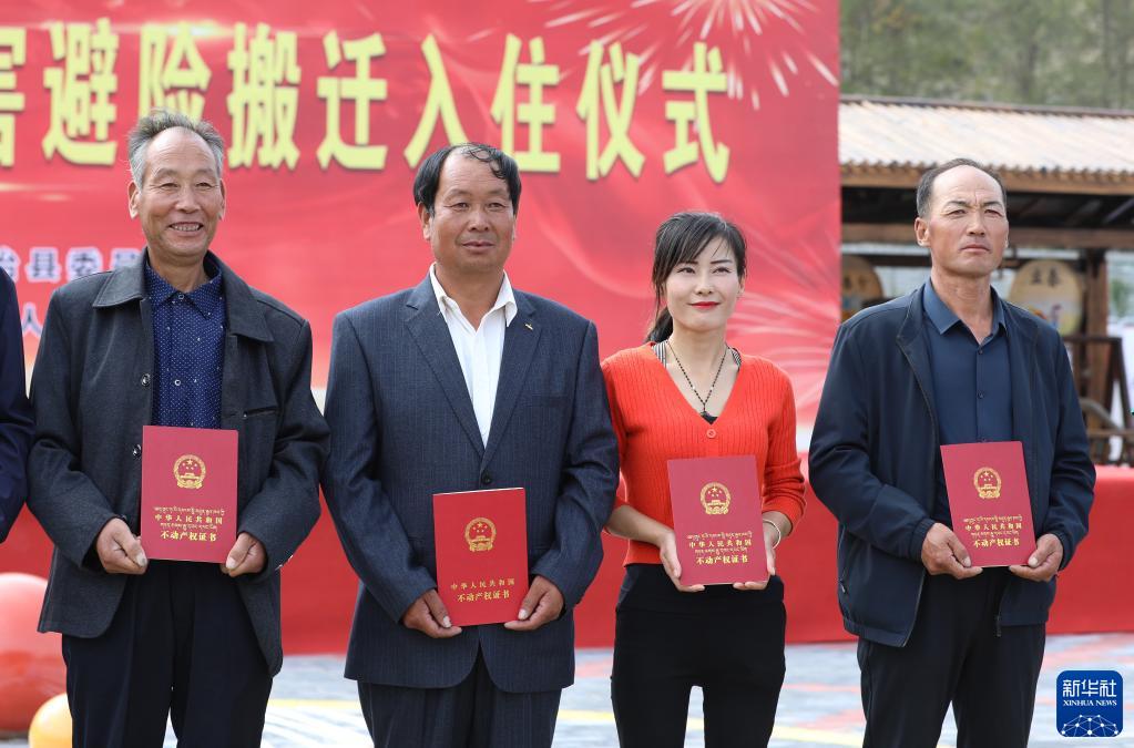 9月15日,在甘肅省武威市天祝藏族自治縣生態(tài)及地質(zhì)災害避險搬遷入住儀式上,祁連鎮(zhèn)116戶群眾拿到不動產(chǎn)權(quán)證書,入住新房。作為生態(tài)脆弱地區(qū),天祝縣通過生態(tài)及地質(zhì)災害避險搬遷工作,嘗試解決地質(zhì)災害威脅和發(fā)展受限問題。