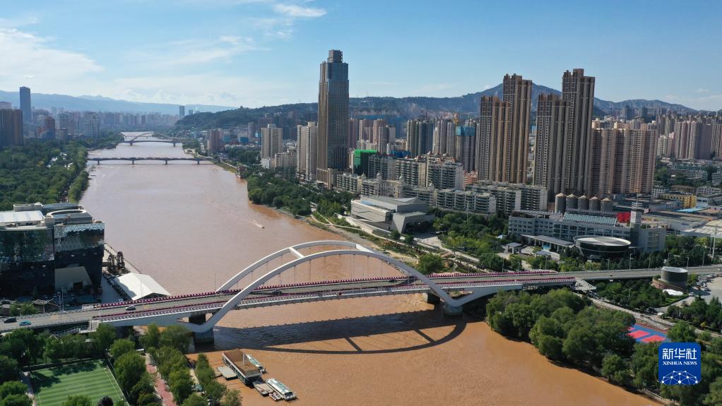 這是在甘肅省蘭州市拍攝的黃河兩岸城市風光(9月5日攝,無人機照片)。新華社記者 陳斌 攝