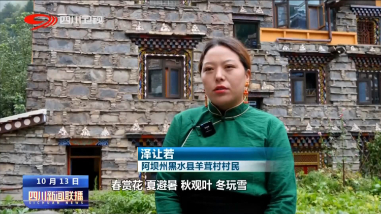 阿壩州黑水縣羊茸村村民 澤讓若:春賞花,夏避暑,秋觀(guān)葉,冬玩雪,越來(lái)越多的游客來(lái)到我們這兒,以前是不敢想的。