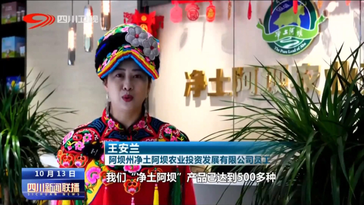 阿壩州凈土阿壩農(nóng)業(yè)投資發(fā)展有限公司員工 王安蘭:我們凈土阿壩產(chǎn)品已經(jīng)達(dá)到500多種,都實(shí)現(xiàn)現(xiàn)了標(biāo)準(zhǔn)化的生產(chǎn),通過(guò)電商,基本24小時(shí)就可以到達(dá)全國(guó)各地。