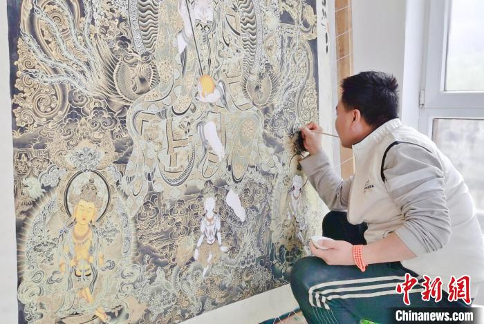 圖為畫(huà)師繪畫(huà)唐卡?!●R文莉 供圖