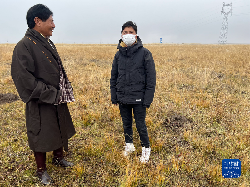東周(左)和兒子萬(wàn)瑪王青在交談。新華社記者 康錦謙 攝