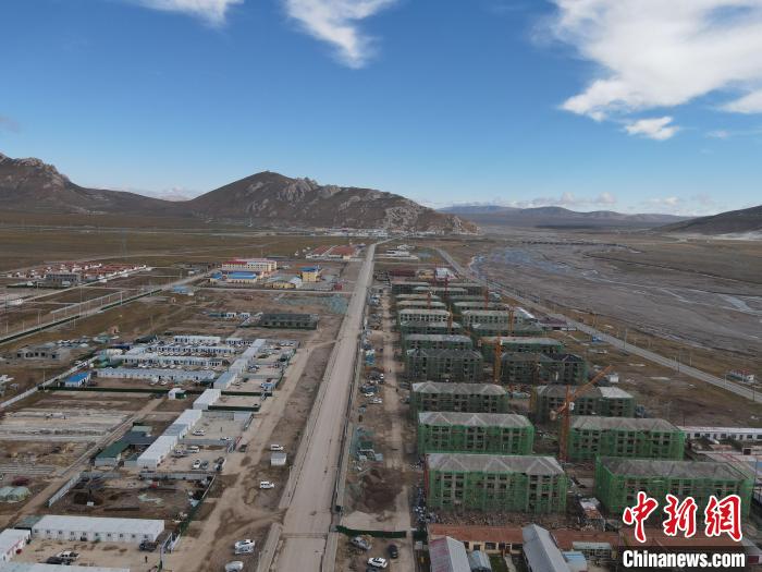 圖為無(wú)人機(jī)航拍災(zāi)后重建農(nóng)牧民D級(jí)住房項(xiàng)目?,敹嗫h委宣傳部 供圖
