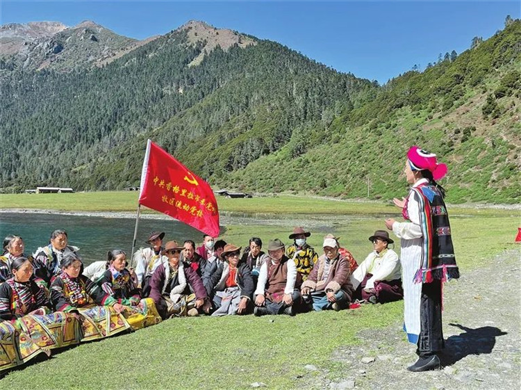 圖為香格里拉市委黨校牧區(qū)流動黨校為群眾宣講黨的二十大精神