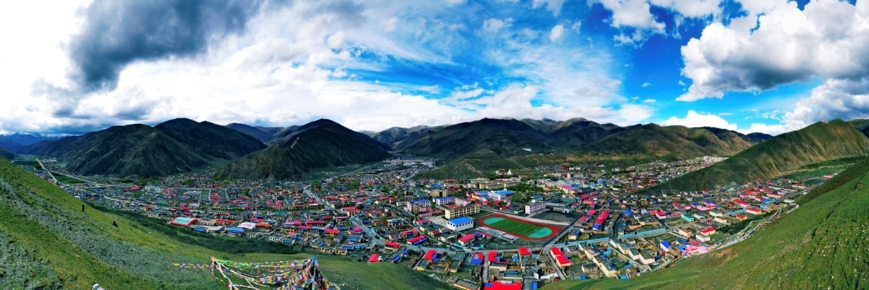 圖為遠(yuǎn)眺青海省玉樹(shù)藏族自治州稱(chēng)多縣