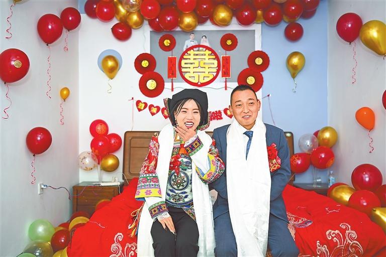 在熱鬧的鞭炮聲和一聲聲祝福中,一場(chǎng)喜慶的藏族婚禮在新康村舉行。搬出大山,遠(yuǎn)離地災(zāi)危險(xiǎn)區(qū),新康村村民本永龍?jiān)趯挸ㄕ麧嵉男录依镉⑺蠲利惖男履铩?/p>