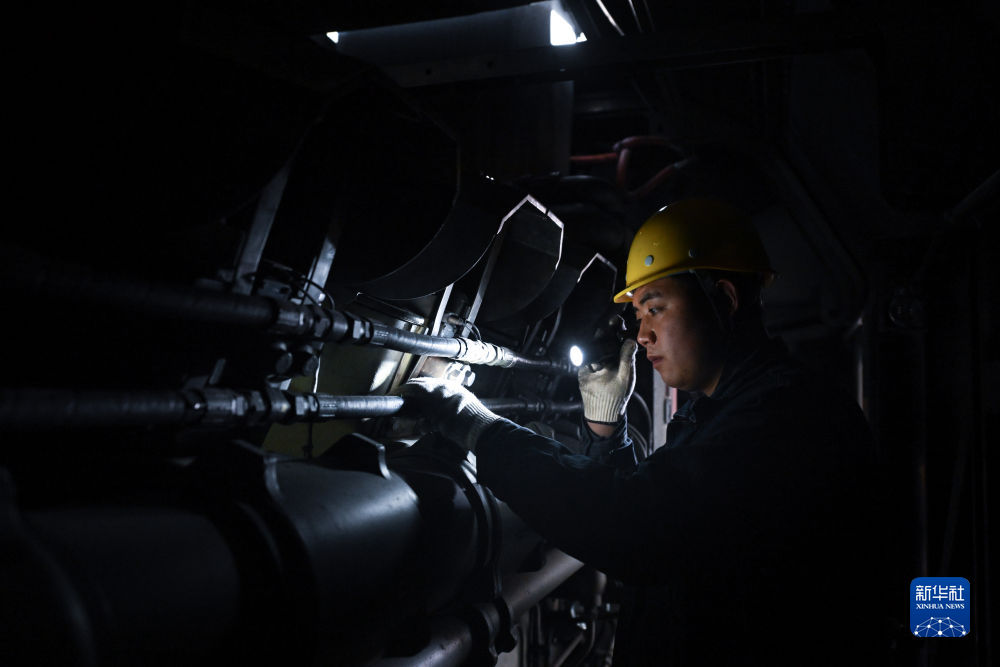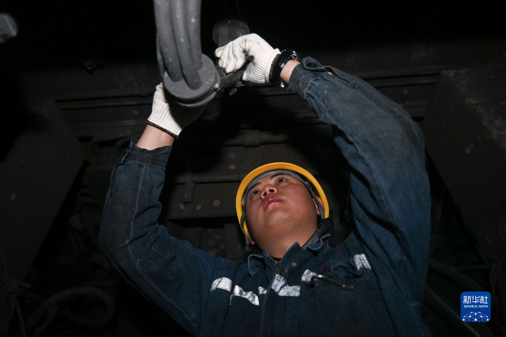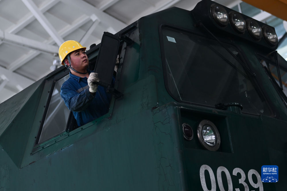 2月4日,在格爾木機務(wù)段檢修車間,馬國仁在檢修機車。新華社記者 張龍 攝