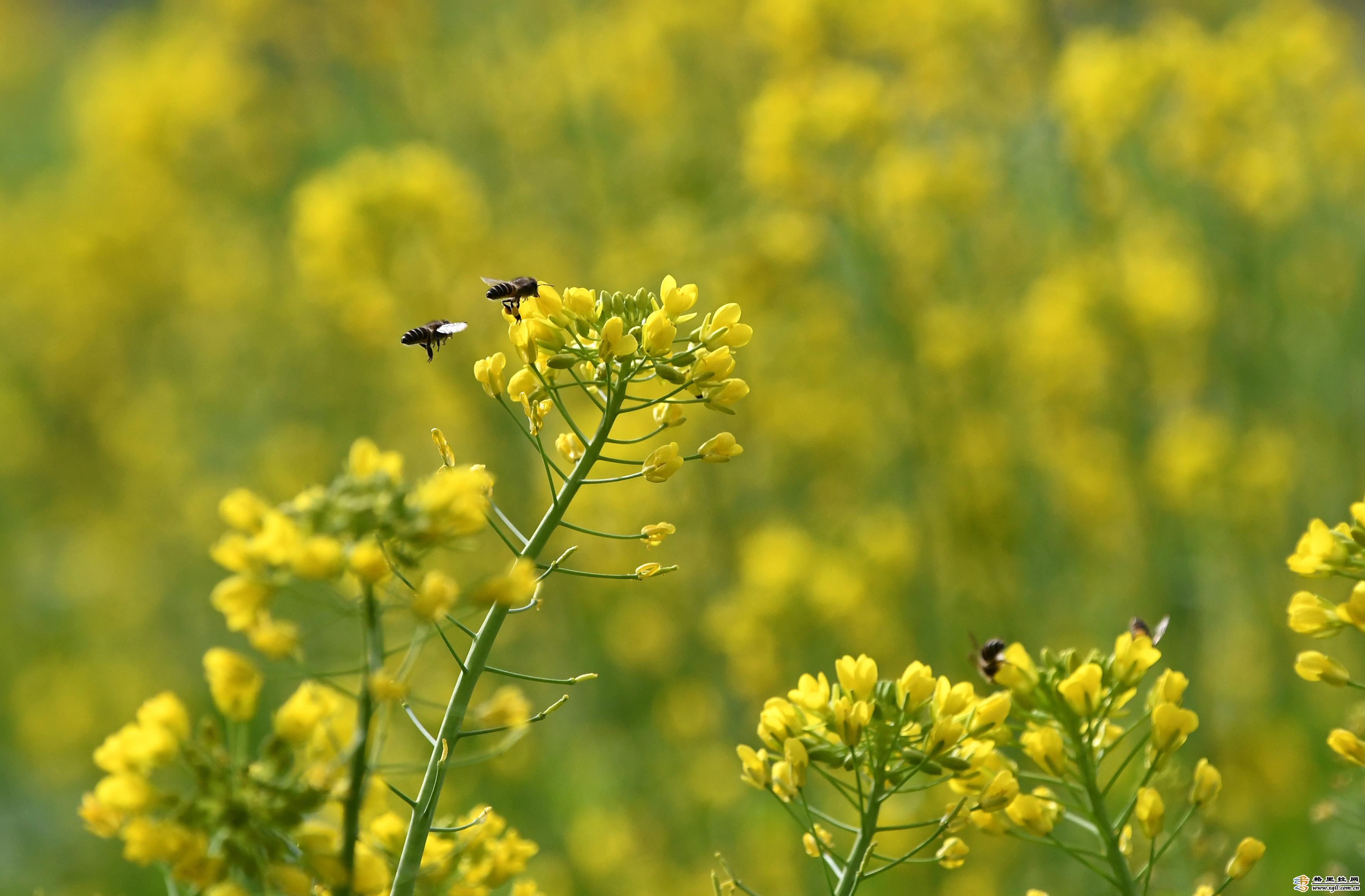 辛勤的蜜蜂已經(jīng)嗅到油菜花香,在黃色間來回穿梭,預(yù)示著春天已經(jīng)悄悄來到我們身旁。