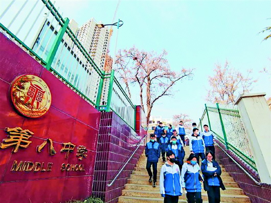 蘭州市第八中學的學生走出校園