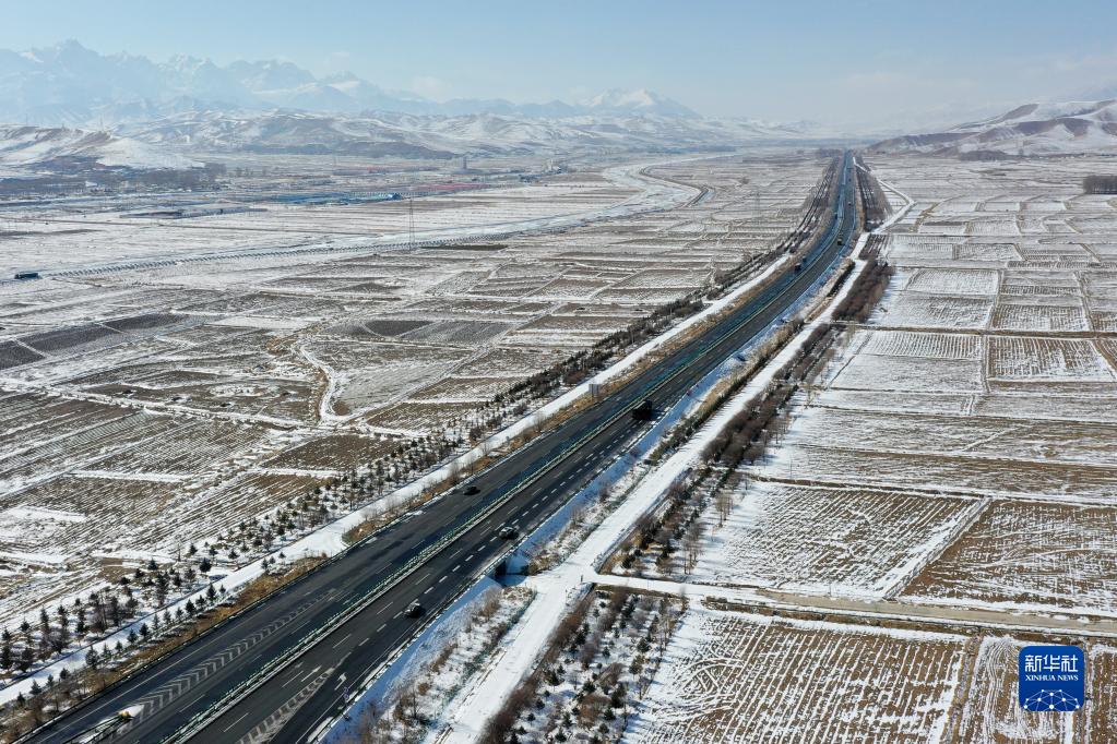 2月14日拍攝的烏鞘嶺及周邊雪景(無人機照片)。新華社記者 范培珅 攝
