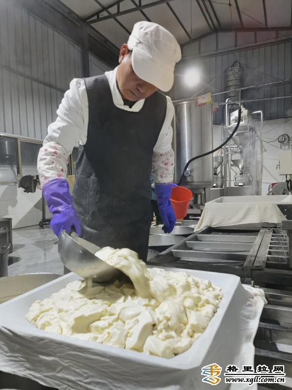 隨著豆腐生意越來越好,王文忠引進(jìn)了新設(shè)備,日產(chǎn)豆腐近2000斤,夫妻倆更加認(rèn)真地鉆研豆腐制作工藝,在原料選擇、點漿上下足功夫,在增加產(chǎn)量的同時保障了豆腐的品質(zhì)。