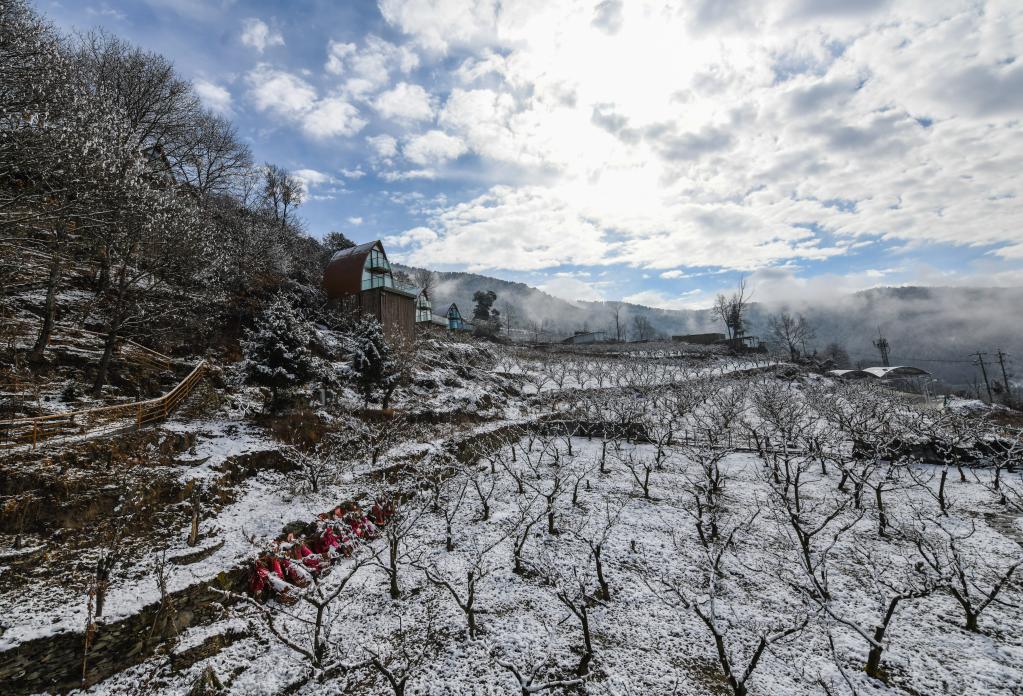 2月9日,一場大雪后,克枯村的李子樹枝干上掛滿雪花。新華社記者 王曦 攝