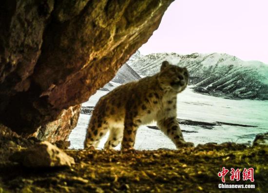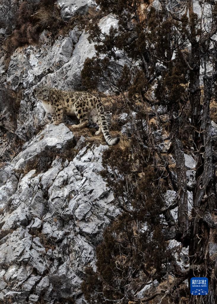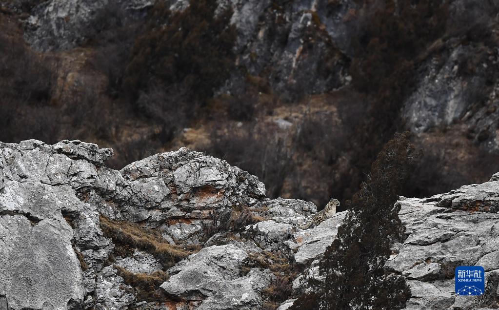2月21日,在青海省玉樹藏族自治州雜多縣昂賽鄉(xiāng)境內(nèi)的昂賽大峽谷內(nèi),一只雪豹正在活動(dòng)。新華社記者 張宏祥 攝