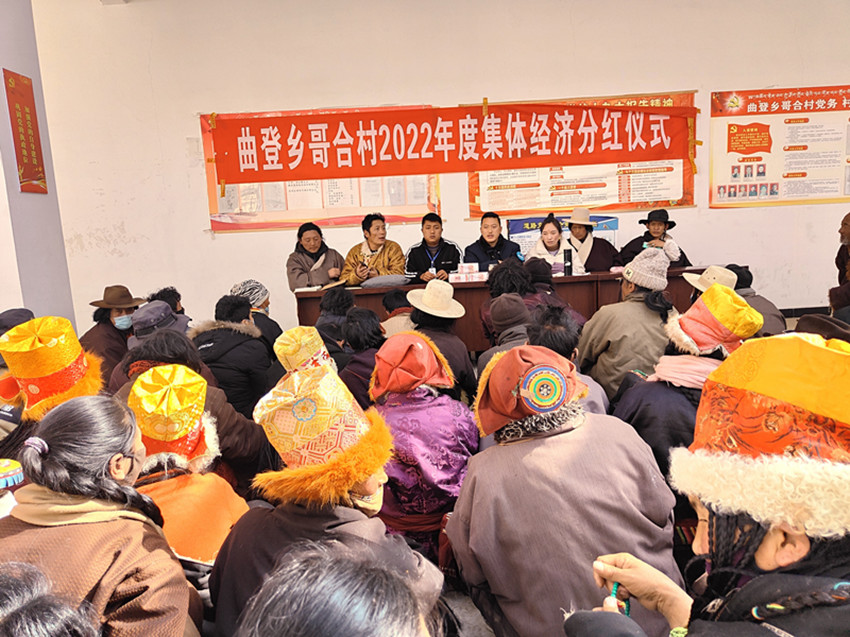 圖為曲登鄉(xiāng)哥合村集體經(jīng)濟(jì)分紅現(xiàn)場。