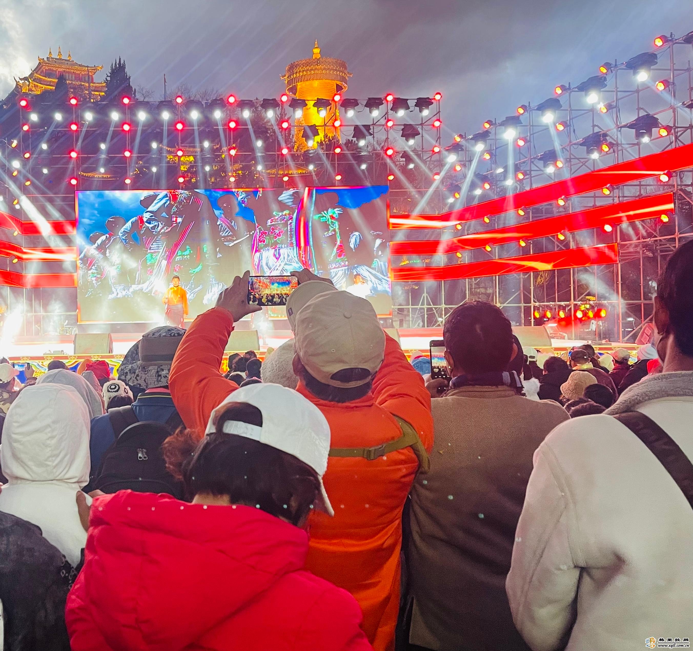 “我在古城月光廣場(chǎng),今晚這里有演唱會(huì)”“你快來(lái)啊,我在舞臺(tái)旁邊坐著等你”……2月21日19時(shí),距離“相約世界的香格里拉·本土歌手唱家鄉(xiāng)”演唱會(huì)開(kāi)始還有20分鐘,本地居民、游客紛紛呼朋喚友聚集到香格里拉市獨(dú)克宗古城月光廣場(chǎng)。