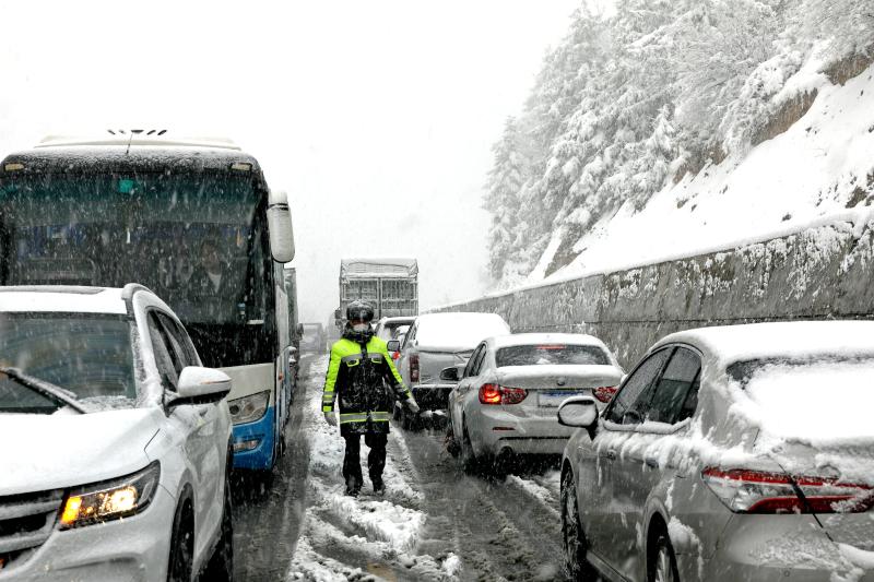 2月22日,大雪使白馬雪山路面積雪結(jié)冰,導(dǎo)致上百輛汽車擁堵滯留,交警冒著嚴(yán)寒疏導(dǎo)交通。[詳細(xì)]