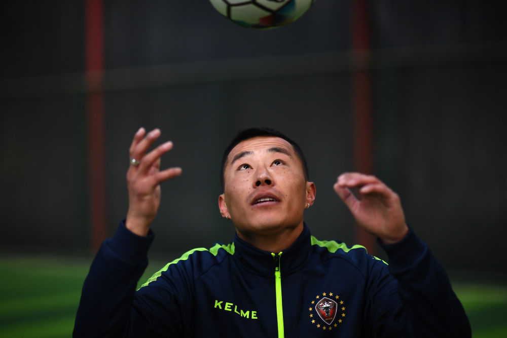 3月2日,在玉樹州玉樹市一處室內(nèi)球場,玉樹康巴野牦牛足球隊隊員、2018-2019年“玉樹足球先生”尼瑪才仁在場邊熱身。新華社記者 張宏祥 攝