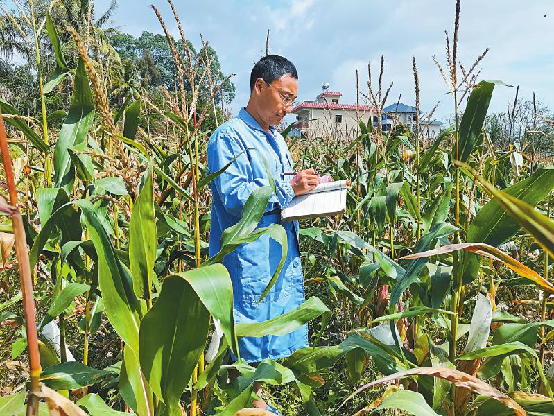 去年12月中下旬,城東村南繁育種基地的玉米進入開花吐絲期。楊榮志和吳鋼也趕到海南支援。