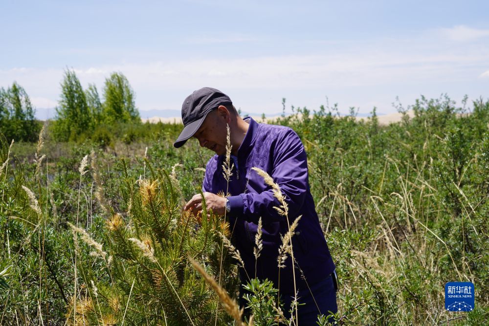 青海大學(xué)研究員、博士生導(dǎo)師張登山已連續(xù)30多年參與、主導(dǎo)青海湖沙區(qū)治理項目。張登山介紹,新突破來自2019年啟動的“青海湖東綜合防沙治沙及沙產(chǎn)業(yè)試驗示范”項目,課題組在以往大面積固定流動沙丘的基礎(chǔ)上,探索選育新型植物品種,把麥草沙障替換成“植物活沙障”,發(fā)展沙產(chǎn)業(yè),實現(xiàn)更大生態(tài)、經(jīng)濟效益。