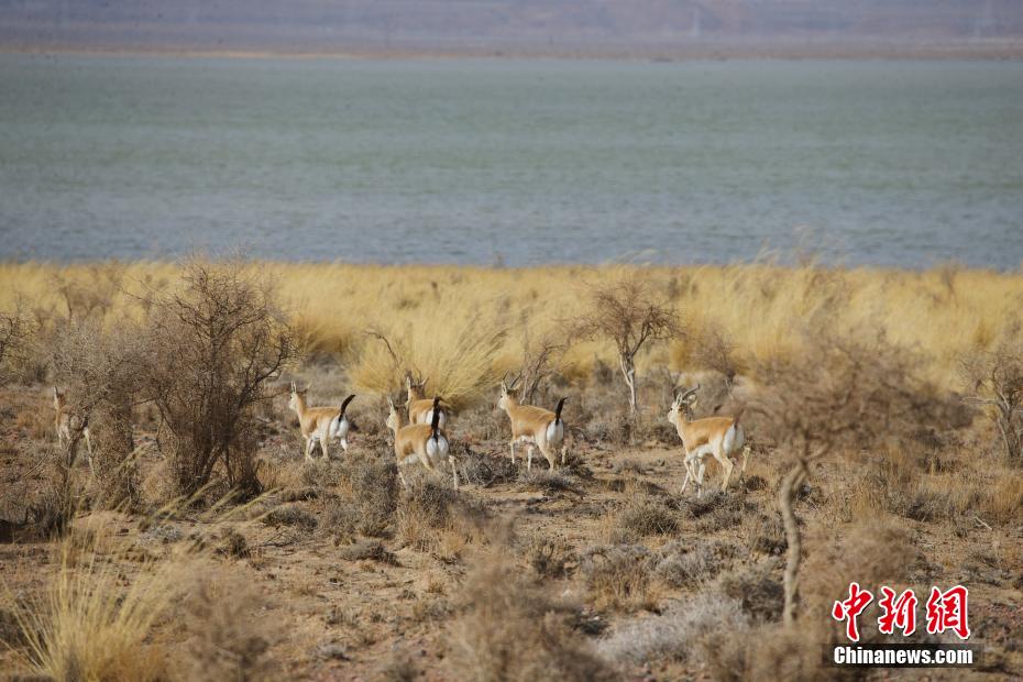 圖為都蘭湖國家濕地公園內(nèi)成群的鵝喉羚。馬銘言 攝
