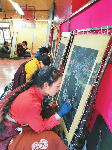 “現(xiàn)在,一個年輕的唐卡畫師,一幅大型作品就能賣出上百萬。”嘉陽樂住表示,雖然現(xiàn)在有了很多批量化生產(chǎn)的唐卡產(chǎn)品,但堅持傳統(tǒng)材料和工筆技藝虔心繪制的唐卡作品,依然受到市場的高度認可,“有些畫師的訂單已經(jīng)排到數(shù)年以后了。”目前,壤塘非遺項目產(chǎn)生的經(jīng)濟效益有2000萬元左右,對于偏遠牧區(qū)來說,這是一筆可觀的收入,同時帶動了3000余人就業(yè),創(chuàng)造了一個立足中華優(yōu)秀傳統(tǒng)文化脫貧致富的成功案例。