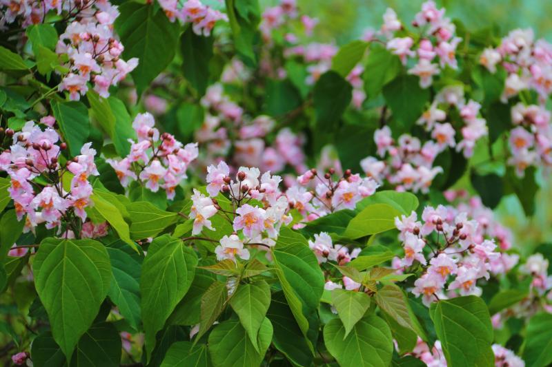 楸英獨(dú)嫵媚,淡紫相參差。春季是春花爛漫的時(shí)節(jié),一花落盡又有一花開,在迪慶香格里拉經(jīng)濟(jì)開發(fā)區(qū),楸樹正迎來繁花期,一樹樹楸花簇?fù)砭`放,隨風(fēng)搖曳,美不勝收。