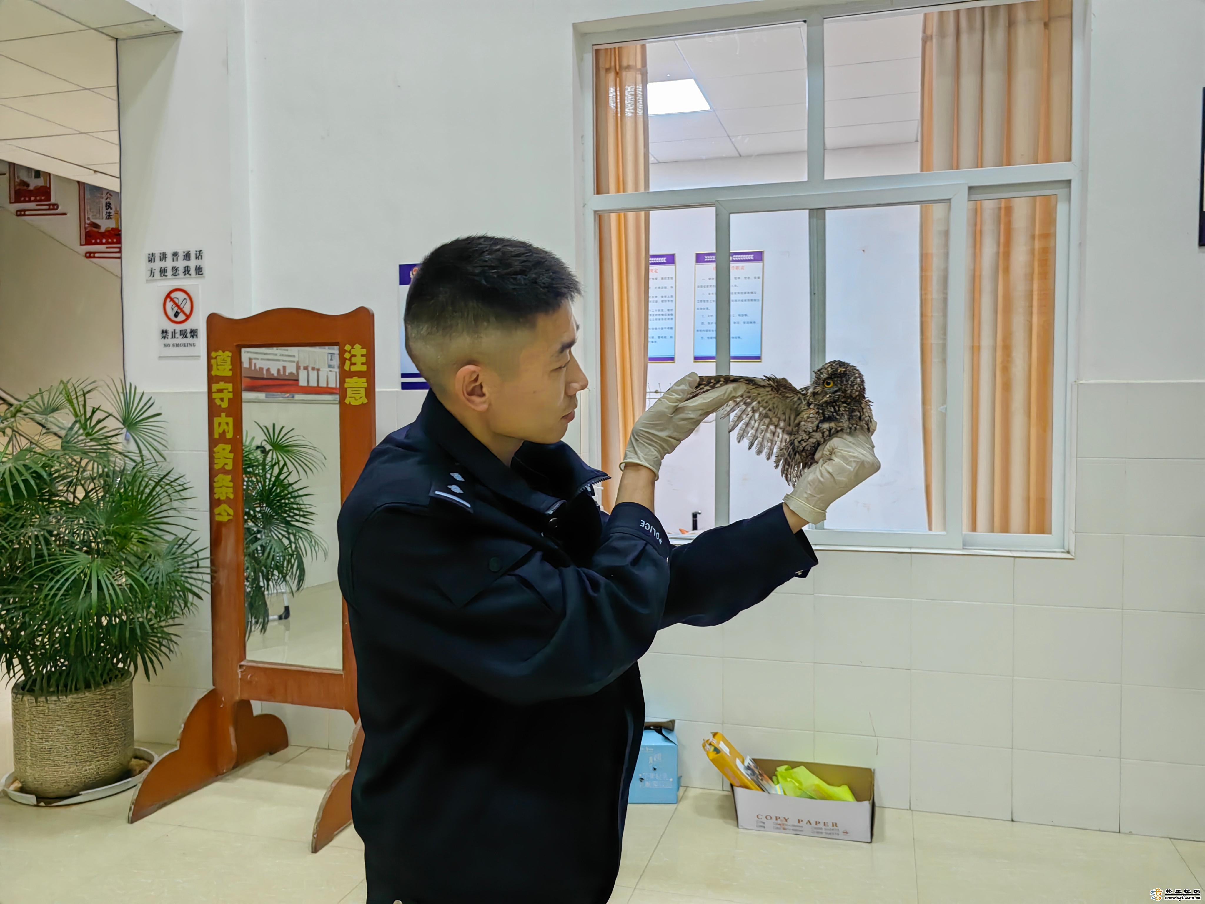 近日,維西縣公安局森警大隊民警接到群眾報警稱:“在興維大道錦盛小區(qū)發(fā)現(xiàn)一只受傷的貓頭鷹,請求森警大隊民警前往救助”。民警趕到現(xiàn)場時,熱心群眾已經(jīng)將貓頭鷹放在一個紙盒里,該貓頭鷹全長約20厘米,身上部分羽毛是濕的。
