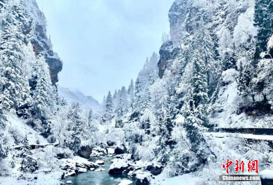 3月底,甘肅甘南藏族自治州卓尼縣大峪溝被一場春雪覆蓋,紛紛揚揚的雪花勾勒出一幅意境深遠(yuǎn)的水墨丹青畫。大峪溝與九寨溝齊名,有“南有九寨溝、北有大峪溝”之美譽。圖為春雪增春色,大峪溝玉樹瓊枝的場景。
