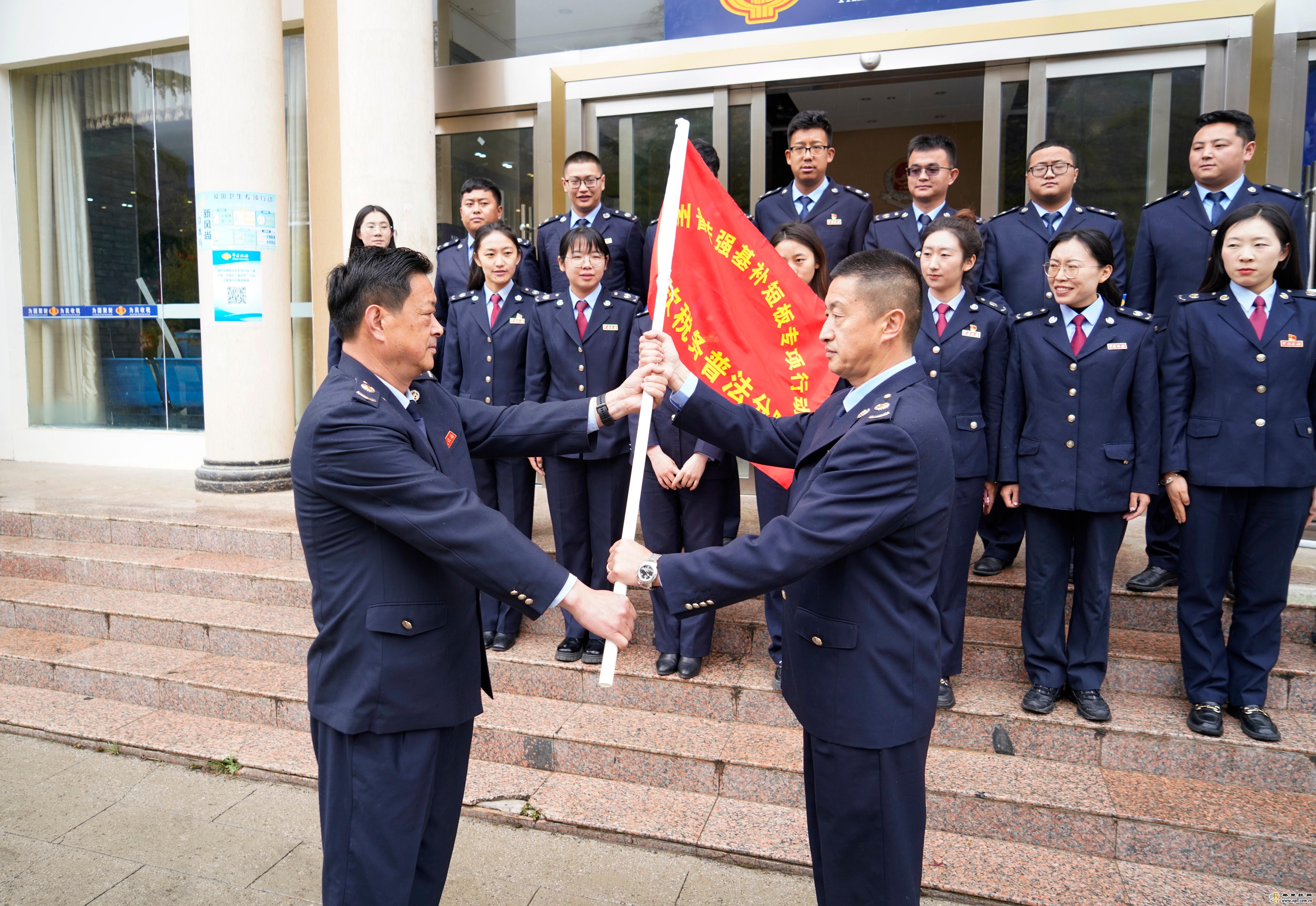 近日,國家稅務(wù)總局迪慶州稅務(wù)局舉行迪慶州普法強基補短板專項行動全州稅務(wù)系統(tǒng)普法分隊授旗儀式,拉開我州第32個全國稅收宣傳月活動的序幕。儀式上,州稅務(wù)局相關(guān)負(fù)責(zé)人為三縣(市)及開發(fā)區(qū)稅務(wù)局稅務(wù)普法分隊授旗。