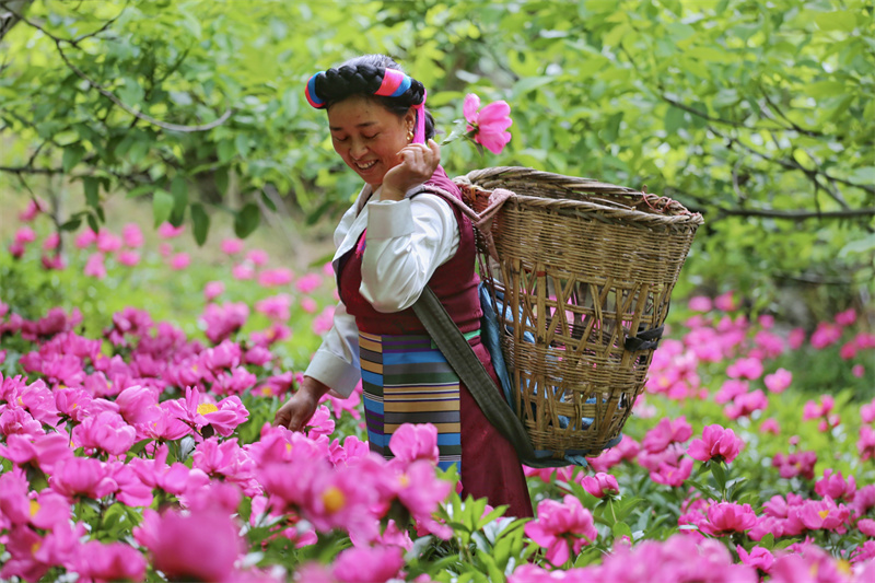 五月,正是芍藥花開(kāi)的最佳時(shí)節(jié)。在維西縣塔城鎮(zhèn)其宗村村民楊小花家的芍藥地中,大片的芍藥花競(jìng)相開(kāi)放,花團(tuán)錦簇、花香四溢,楊小花正在田間忙碌著采摘芍藥花朵,芍藥花及根采挖后都可出售,在增加收入的同時(shí)也成為田間地頭一道美麗的風(fēng)景線。