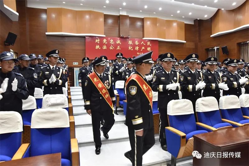 迪慶州公安局會議室內(nèi),全體民警身著警禮服已等候多時。
