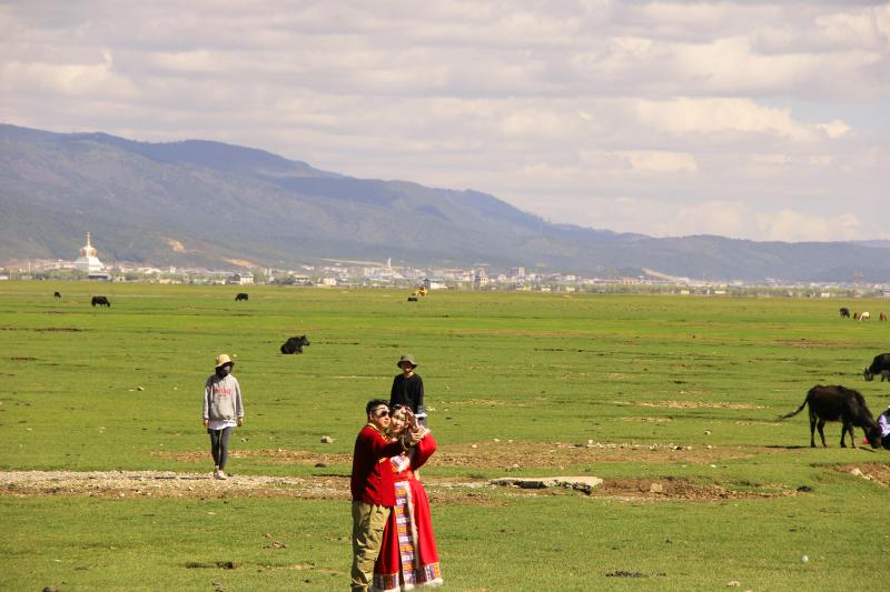 伴隨著立夏過(guò)后的第一場(chǎng)雨雪,迪慶高原綠意更濃。納帕海湖畔更添一分高原夏日氣息,碧藍(lán)的湖水、翠綠的草原和自由行走在草原上的牛羊是高原獨(dú)特的風(fēng)景線。深深吸引著來(lái)自五湖四海的游人駐足觀賞。雖然“五一”假期已過(guò),但前往納帕海游玩的游客并沒(méi)有減少,不少游客表示是特意前往這里感受草原風(fēng)光、拍照留念的。