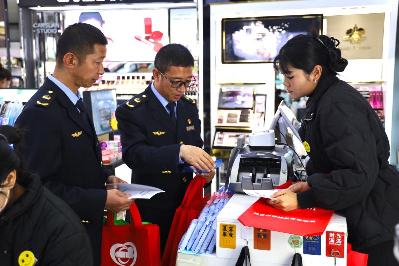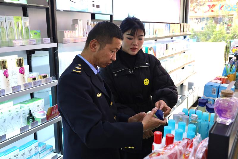 啟動儀式結束后,市場監(jiān)督管理部門的工作人員為現(xiàn)場群眾發(fā)放并講解宣傳冊,同時為化妝品經營商進行上門普法,規(guī)范企業(yè)經營行為。
