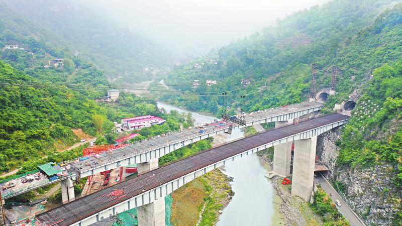 桑園子大橋合龍施工現(xiàn)場(chǎng)。中國(guó)五冶集團(tuán)供圖