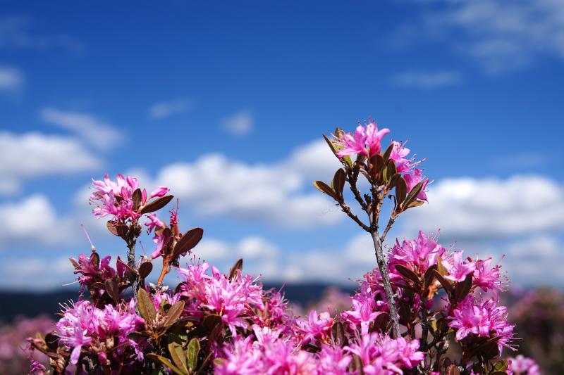 五月的香格里拉,是杜鵑花盛開的季節(jié)。建塘鎮(zhèn)稱尼壩子上的粉色杜鵑開放,大片的杜鵑鋪滿了山腳下的壩子,仿佛給大地鋪上了粉色地毯。