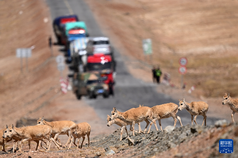 藏羚羊“過(guò)馬路”,車(chē)輛請(qǐng)注意!