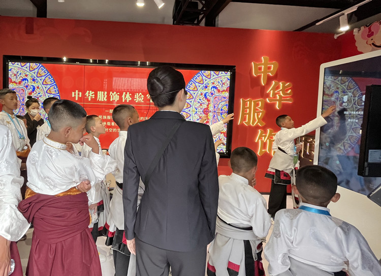圖為玉樹少年們用科技手段“試穿”各民族服飾 攝影:王茜