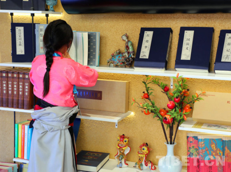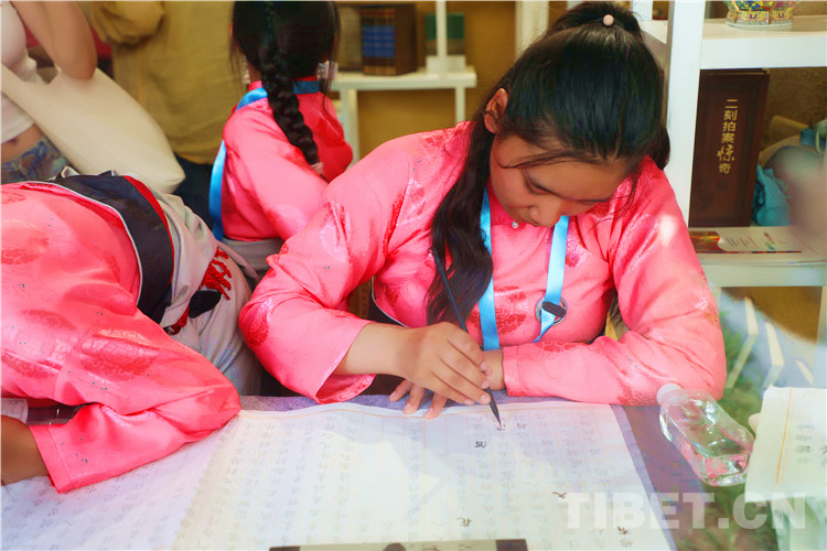 當穿著藏裝的姑娘走過書架,翻開四大名著,努力讀出上面的文字,在古香古色的書桌前,幾個姑娘爭先用毛筆描繪著宣紙上的小楷,那畫面美得像一幅幅仕女畫。