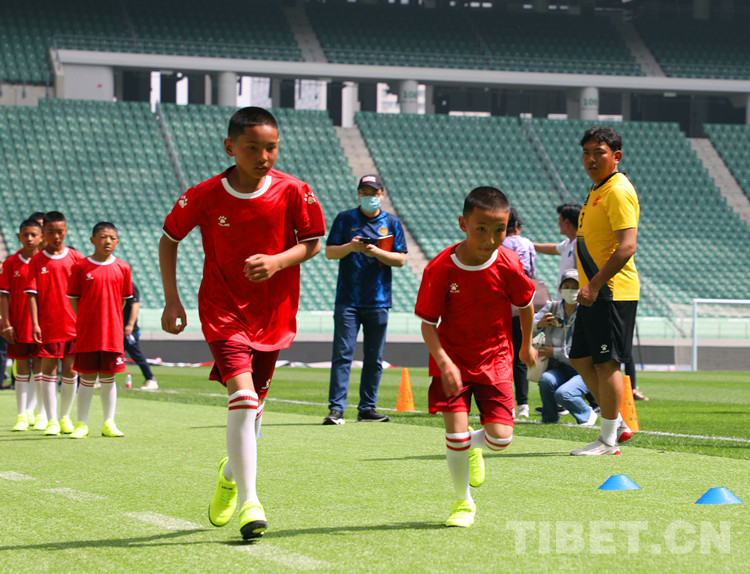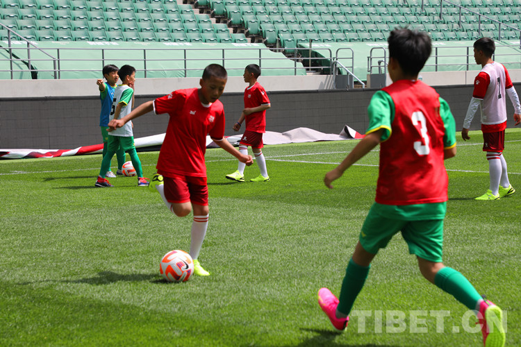 同樣在這片場(chǎng)館,6月1日,他們和北京國(guó)安的30名小球員進(jìn)行過(guò)一場(chǎng)交流賽。來(lái)自雪域風(fēng)一般的少年們完全忽略了北京炎熱的天氣,在場(chǎng)上放飛奔跑,追逐拼搶。