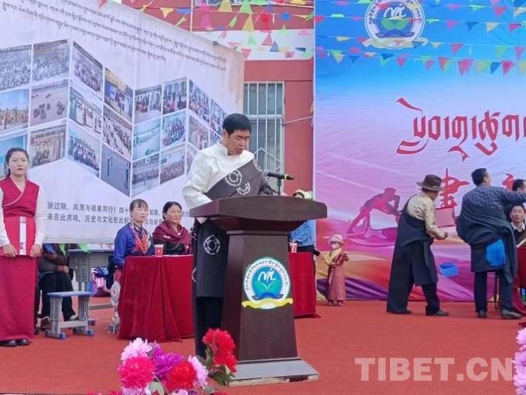 圖為開(kāi)幕式上,校長(zhǎng)索南達(dá)杰致辭