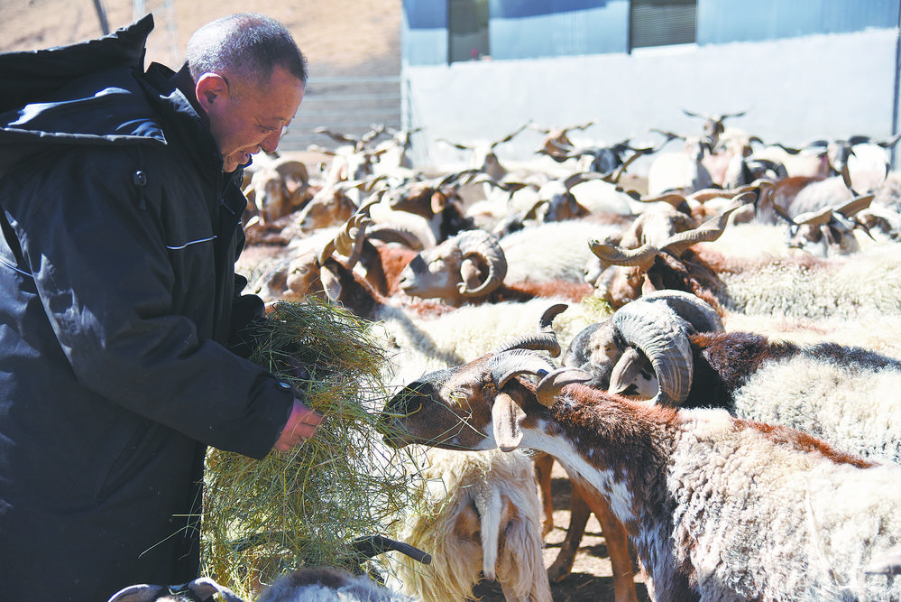 從氣溫變化對賈洛羊覓食是否有影響到是否導(dǎo)致疾病,從飼草料比例搭配到投喂時間,一進(jìn)門莫華青便對每個飼養(yǎng)環(huán)節(jié)展開了詳細(xì)詢問。2021年當(dāng)?shù)卣鲑Y幫助文格建成了這個面積達(dá)750平方米的畜牧棚,每年為其提供10噸飼料,解決了他的成本問題。通過專業(yè)培訓(xùn)和技術(shù)員入戶現(xiàn)場指導(dǎo),彌補(bǔ)了技術(shù)短板。采取統(tǒng)一收購,讓他打消后顧之憂?!耙郧袄浅Ru擊羊群,最嚴(yán)重的一次一夜間被狼咬死7只羊羔?,F(xiàn)在有了畜棚羊不僅安全了,而且在恒溫條件下羊得病少了,產(chǎn)仔率和成活率都提高了,膘還長得快?!别B(yǎng)了大半輩子牛羊的文格嘗到了“生態(tài)家庭牧場”的甜頭,去年,他僅靠賈洛羊就掙了近50萬元。