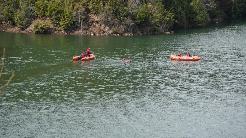 本次演練包括繩索救援、水域救援、高空救援橫渡三個(gè)專項(xiàng),演練現(xiàn)場(chǎng)緊張有序。