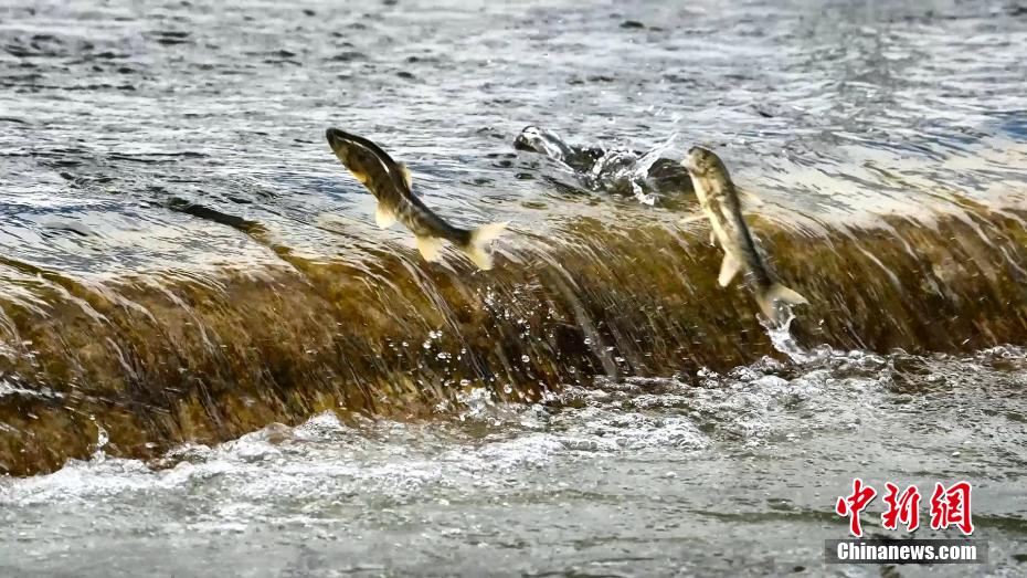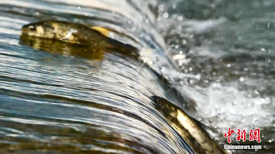圖為青海湖裸鯉奮力向上洄游。