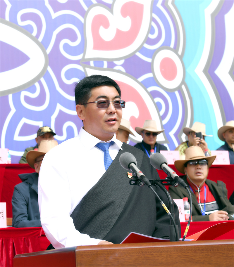 州委常委、香格里拉市委書記楊梓江致辭。他說,黨的十八大以來,在黨中央的親切關(guān)懷下,在省委、省政府和州委、州政府的堅(jiān)強(qiáng)領(lǐng)導(dǎo)下,香格里拉市堅(jiān)持推動(dòng)高質(zhì)量發(fā)展,如期實(shí)現(xiàn)脫貧摘帽,進(jìn)入“高速時(shí)代”“5G時(shí)代”,即將在全國(guó)涉藏州縣中率先進(jìn)入“動(dòng)車時(shí)代”,各項(xiàng)事業(yè)取得長(zhǎng)足進(jìn)步,各族群眾的獲得感、幸福感、安全感明顯增強(qiáng),世界的“香格里拉”正逐步從藍(lán)圖走向現(xiàn)實(shí)。他表示,舉辦此次賽馬節(jié),是香格里拉市實(shí)施“潤(rùn)心工程”文化育人行動(dòng),充分挖掘節(jié)慶文化資源,唱響主旋律、弘揚(yáng)正能量、提振精氣神,以文化人、以文育人的重要舉措。期望通過舉辦此次活動(dòng),有力促進(jìn)各民族交往交流交融,有力促進(jìn)“以文塑旅、以旅彰文”取得新成效,有力促進(jìn)大滇西旅游環(huán)線、大香格里拉旅游圈建設(shè)取得新進(jìn)展。