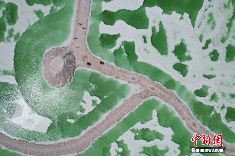 8月15日,航拍地處青海省海西州茫崖市的翡翠湖。翡翠湖是一個人工鹽湖,田字狀的湖水呈現(xiàn)出青翠的色彩。[詳細(xì)]