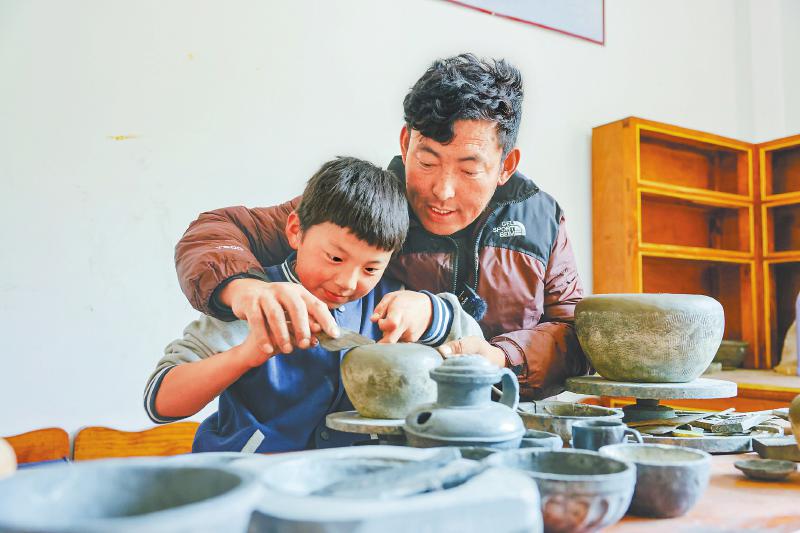 “我土生土長在這里,從父輩那里繼承手藝,不懂營銷,甚至不會(huì)漢語,做銷售很困難。”根呷火熱用藏語告訴記者,“現(xiàn)在好了,我每天只用干兩件事,制作土陶,教徒弟制作土陶?!?/p>