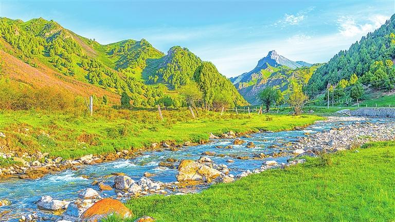 六月,甘肅省天祝縣迎來了一年中最美的時節(jié)。湛藍的天空下,雪山巍峨,青山如畫,草木蔥蘢,水清河暢……