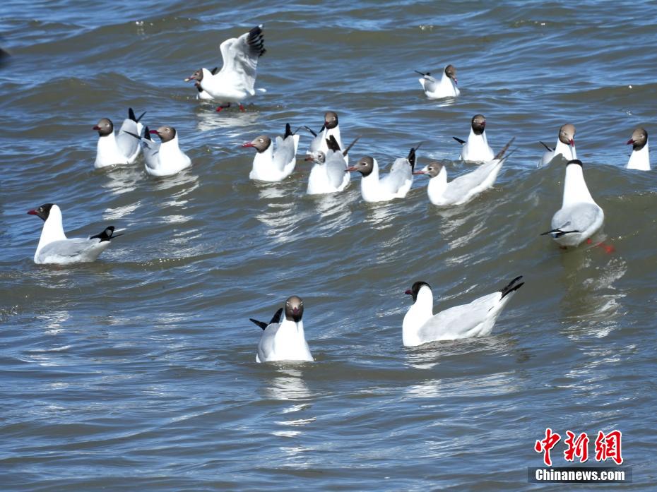 圖為青海湖入湖河流沙柳河的棕頭鷗。包雷 攝