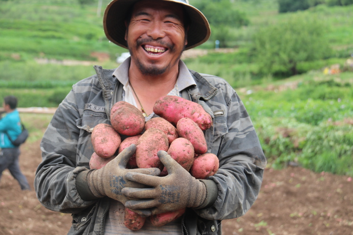 “以前我們種植傳統(tǒng)農(nóng)作物,收入低下,現(xiàn)在在政府的引導下,大規(guī)模種植洋芋,黨委政府還為我們解決銷售后顧之憂,收入成倍增加?!闭谔镩g勞作的村民孫諾江初笑呵呵地說。