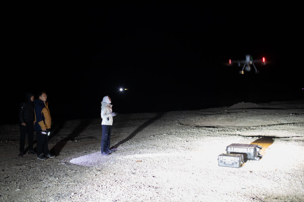6月16日凌晨,連新明團(tuán)隊(duì)使用無(wú)人機(jī)監(jiān)測(cè)藏羚羊遷徙途中的夜宿地。